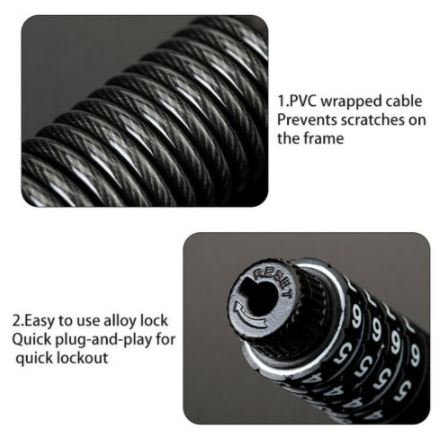ROCKBROS Mini câble de verrouillage de vélo antivol de casque mot de passe de moto noir