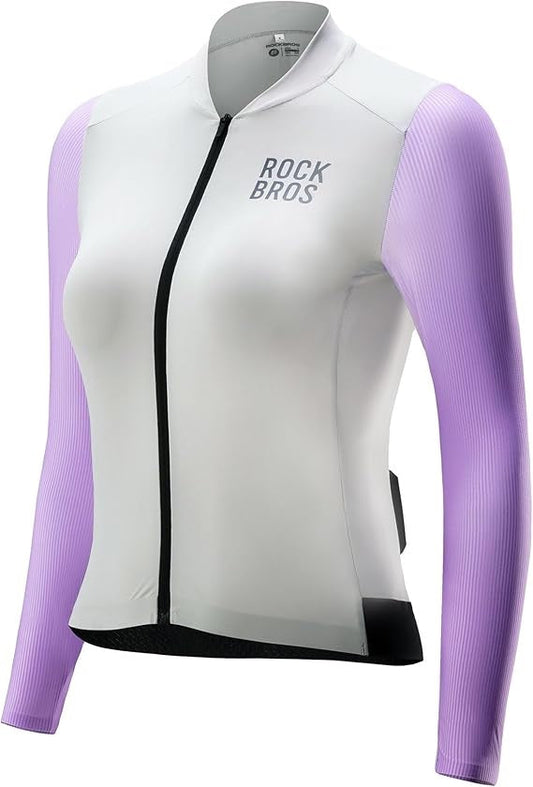 ROCKBROS Maillot de cyclisme pour femme à manches longues - Veste de vélo d'été - Maillot de vélo de route avec 3 poches arrière - Vêtements de cyclisme VTT respirants