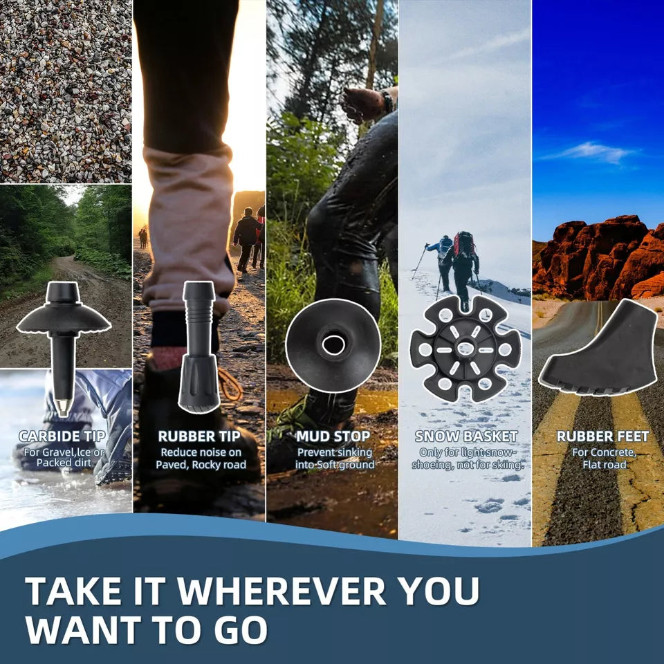 RÉPONDRE À VOS BESOINS D'AVENTURE DE TREKKING : Les bâtons de randonnée Qunature sont livrés avec un sac de transport et un ensemble complet d'accessoires pour bâtons pour le trekking, la randonnée, la marche nordique et la randonnée, etc. Dotés d'accessoires pour bâtons interchangeables, les bâtons de marche en aluminium conviennent à tous les terrains et à tous les temps, même à la neige ou à la boue. Le compagnon idéal pour votre randonnée !