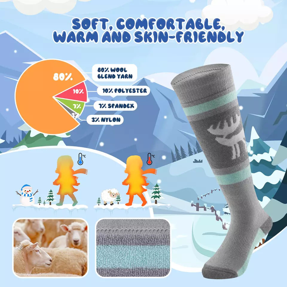 Qunature chaussettes de ski chaussettes d'hiver pour enfants/garçons chaussettes de ski avec laine 1 paire