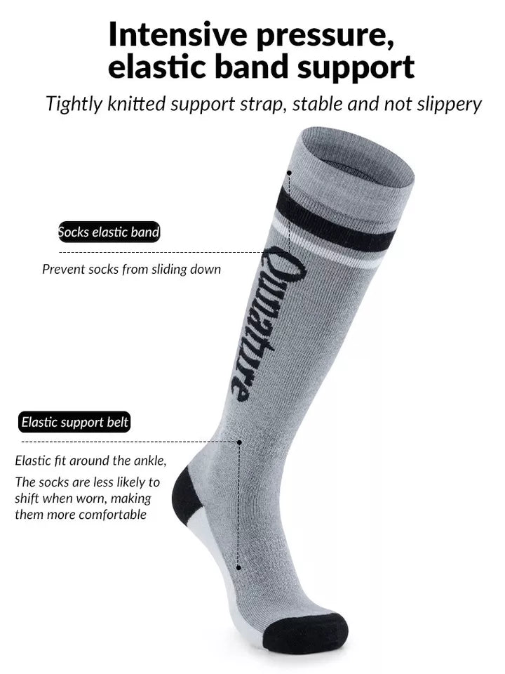 Conception élastique : Les chaussettes sont équipées d'une fermeture à fil élastique et d'une enveloppe élastique. Les chaussettes torsadées ne glissent pas, sont très élastiques et non contraignantes et peuvent facilement bloquer la température. Il y a une bande élastique au milieu des chaussettes de ski pour plus de stabilité.
