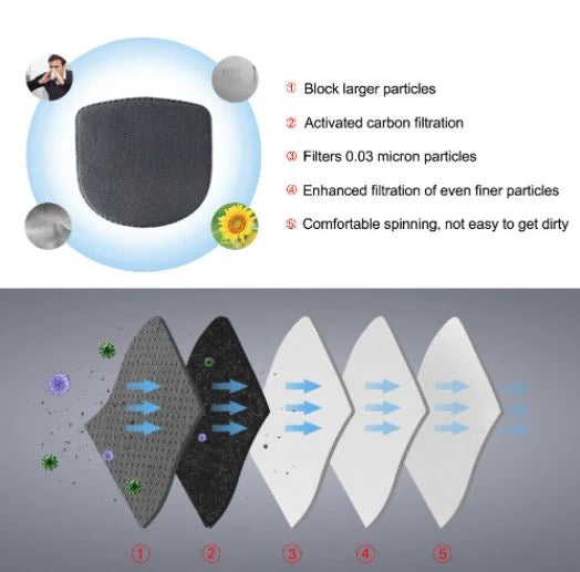 Respirant et anti-poussière : Filtre à charbon actif intégré (remplaçable), anti-poussière, anti-nuage et respirant. Vous pouvez facilement respirer l'air frais et rester à l'écart de la poussière ou de toute autre pollution de l'air avec ce masque de ski.