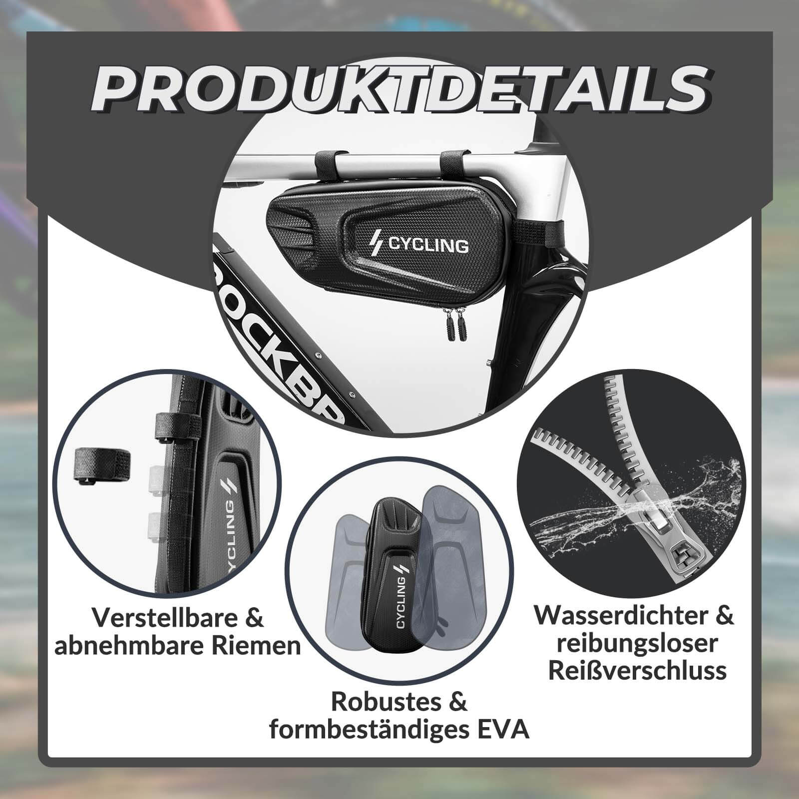 Le matériau extérieur de cette sacoche triangulaire est en EVA de haute qualité. Extrêmement durable, résistant à l'usure et indéformable, ce sac de cadre offre une excellente protection à vos affaires.